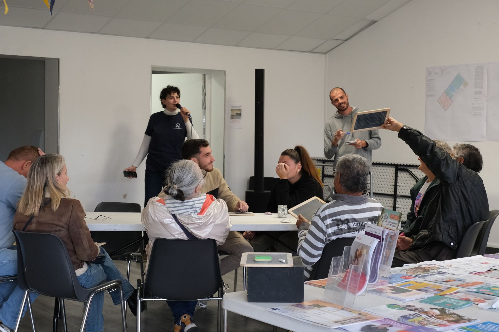 Ce sont à chaque fois des fêtes de village (buvette, restauration, animations…) qui sont organisées sur les places ou dans les salles des fêtes, et auxquelles sont invités des services du territoire, qu’ils soient publics ou associatifs (France Services, les CPTS, la MSA, l’Assurance Retraite, les ADMR…) pour échanger avec la population, et notamment les seniors, des communes rurales isolées et leur présenter les dispositifs qui existent sur le territoire. Chaque événement se termine par une animation où tout le monde (services et habitants) est convié et qui prend la plupart du temps la forme d’un quizz musical par équipe, animé par Ville à Joie.